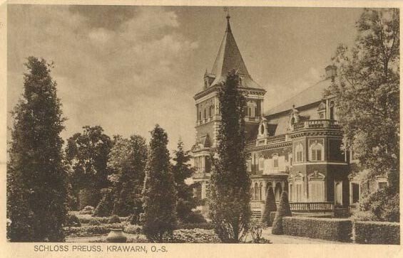 Park mit Schloss im Hintergrund. Die Karte wurde im Jahr 1912 verschickt.