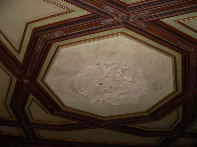 Alle vier Wände sind mit Wesen aus Märchen bemalt: Die sieben Zwerge, Rotkäppchen mit dem bösen Wolf usw.
